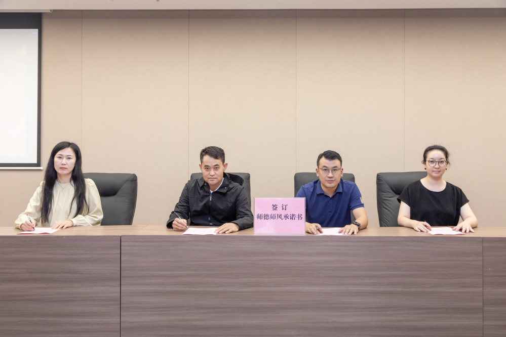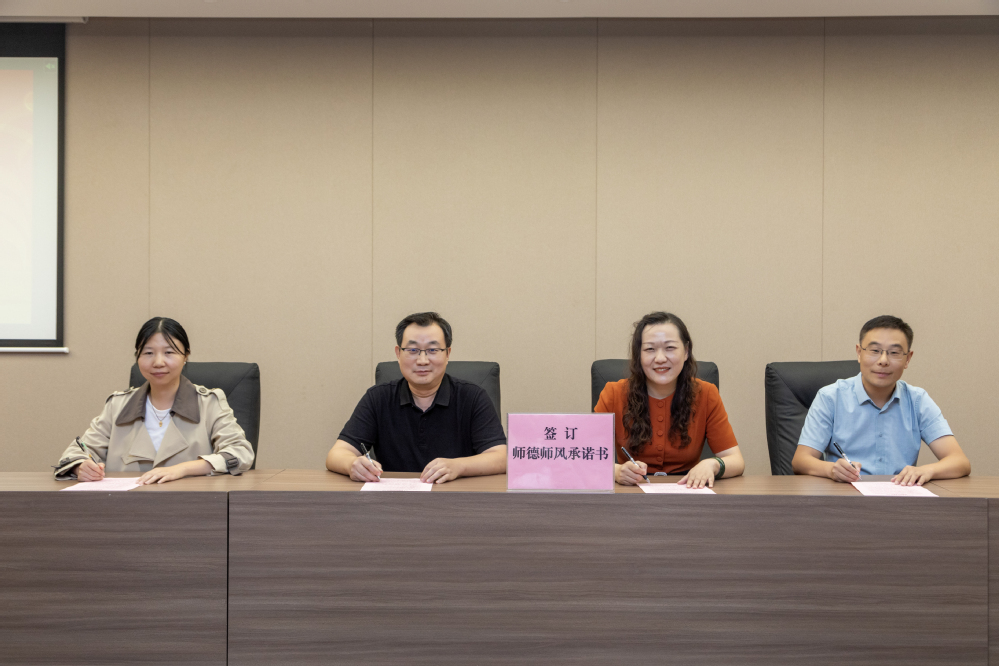 培训结束后,机关党委举行师德师风承诺书签订仪式。仪式分两批进行,第一批机关党委书记郑重、机关党委委员代表韩善仓、晋冬、宋晓芹等签订承诺书;第二批支部书记(临时负责人)及党员代表于溥春、朱清馨、朱鸿英、王生辉等逐一签字,参会的同志们也纷纷在现场签下了自己的承诺书,以庄重承诺筑牢师德师风思想根基。